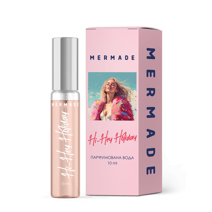 HI-HEY HOLIDAY - фруктово-цитрусові ноти персика, маракуї та груші, які переходять у серце з конвалії, мускусу й малини, завершуючись теплим шлейфом сандалу, ванілі та пачулі.