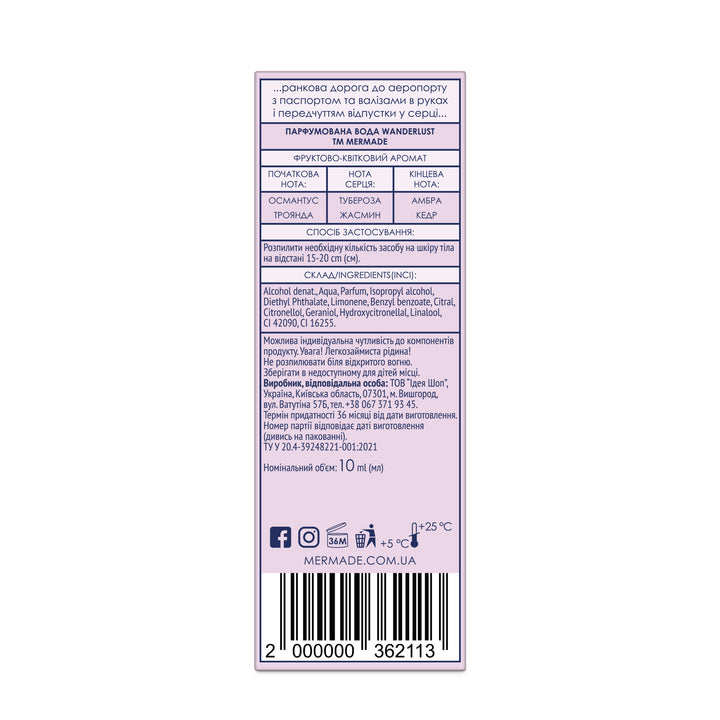 WANDERLUST - квітковий дует жасмину й троянди переходить у глибоке серце з туберозою, а фінішує солодким деревним кедром.