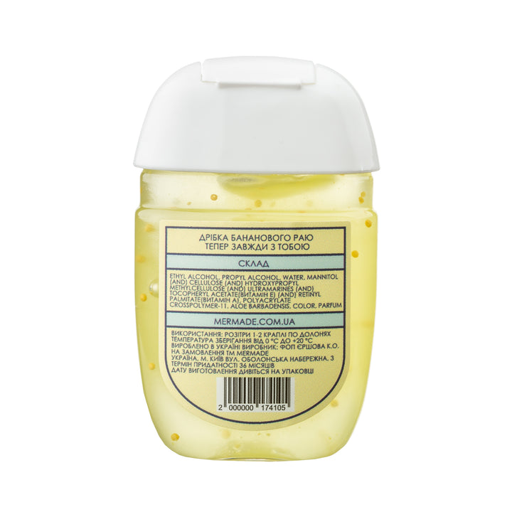 Гелевий антисептик MERMADE Banana Nirvana з ароматом тропічного банану — це максимум фану та користі разом. Засіб не пече, не стягує шкіру та не липне, а завдяки сферам з вітаміном Е прекрасно зволожує та доглядає за дермою. Санітайзер для рук можна носити з собою у кишені, щоб він завжди був під рукою, коли прийде час з'їсти смачний снек.