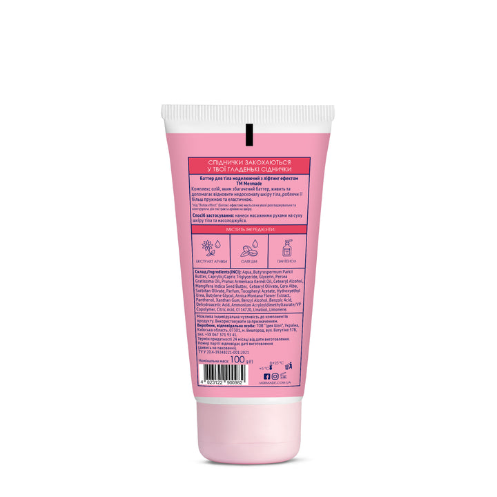 Нанеси баттер на тіло, рівномірно розподілити, можна використовувати разом з масажерами для тіла. Баттер можна використовувати на все тіло для ефективного відновлення пружності шкіри.