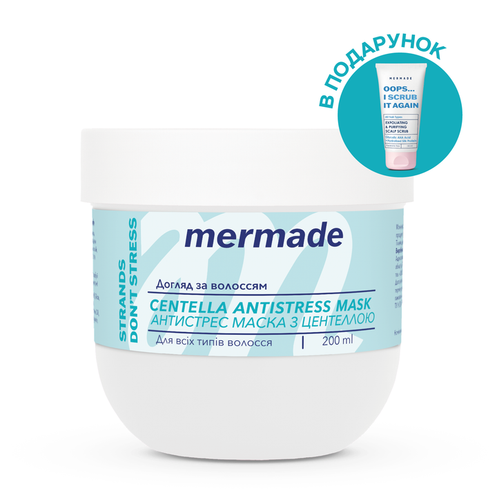 До речі, зараз при купівлі антистрес маски — пілінг для шкіри голови MERMADE АНА Acid & Silk protein в подарунок!