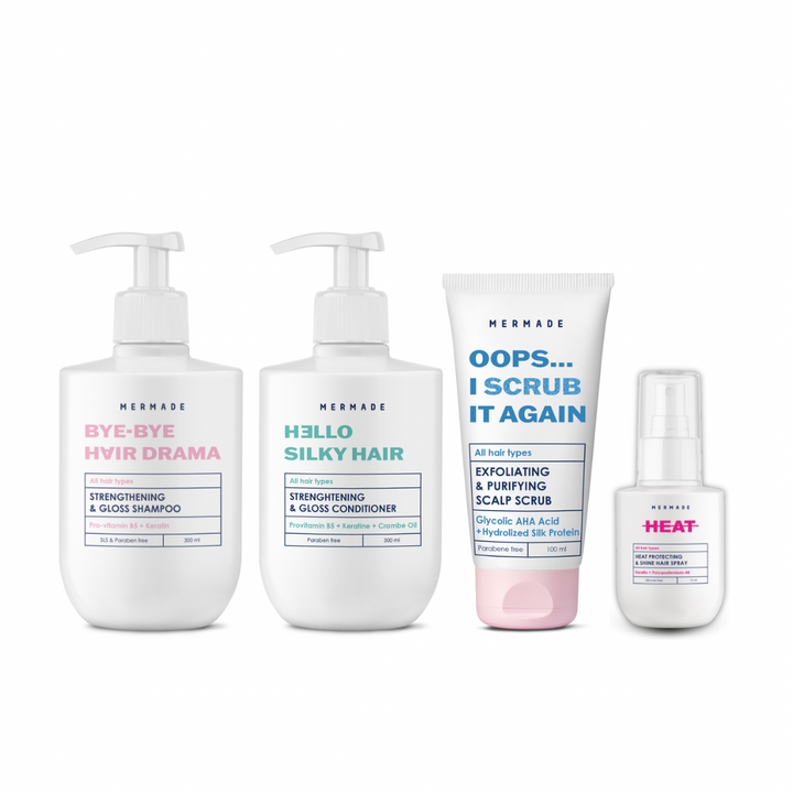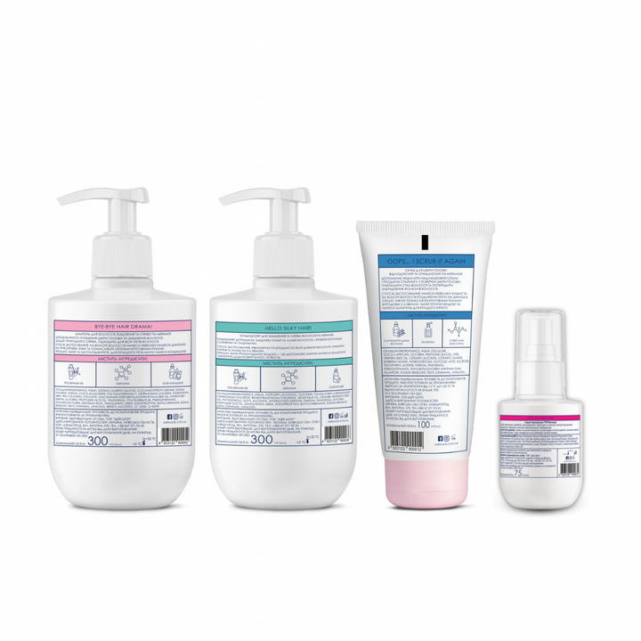 1. Змочи волосся, розділи його на секції та нанеси пілінг на шкіру голови. Масажуй легкими круговими рухами, щоб активувати очищення. Ретельно змий теплою водою.