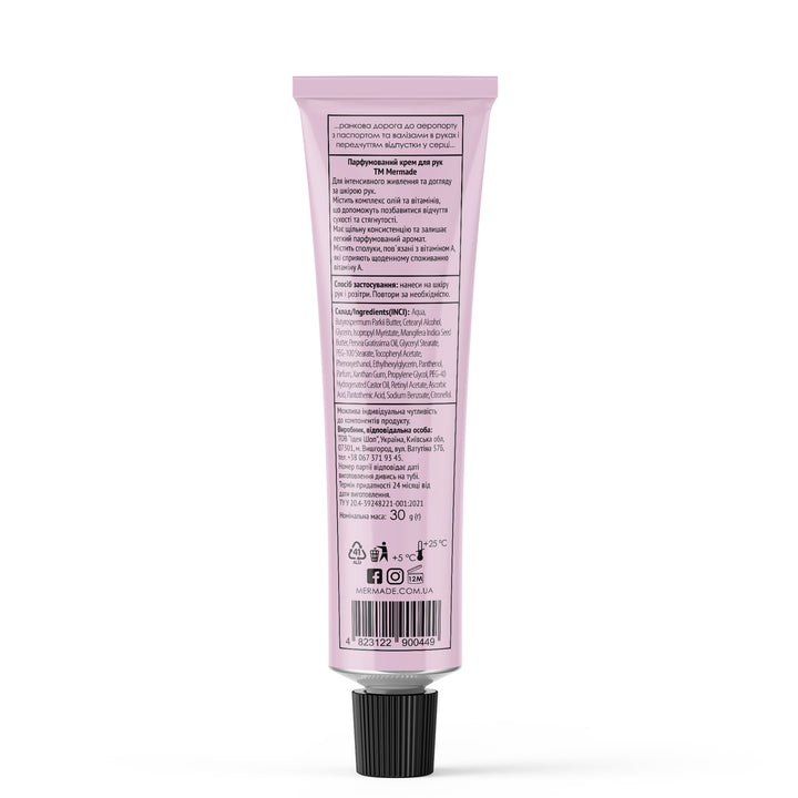 Парфумований крем для рук від MERMADE подарує чудовий, насичений і вже улюблений аромат, буде допомагати живити та доглядати за ніжною шкірою твоїх ручок. Комплекс олій, баттерів та вітамінів допоможе зберегти красу твоїх рук та захистити їх від впливу холоду та несприятливих факторів навколишнього середовища.