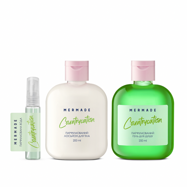 Countrycation – це найтепліші спогади про літо. Це відпочинок у бабусиному домі, де є гамак, сад зі стиглими, соковитими фруктами, найдушевніші сніданки і мальовнича річка. Аромат розкривається солодкою магнолією і свіжим огірком. Серцеві ноти перенесуть тебе в яблуневий сад. А сандал і амбра створять невагомий шлейф дорогих серцю спогадів.