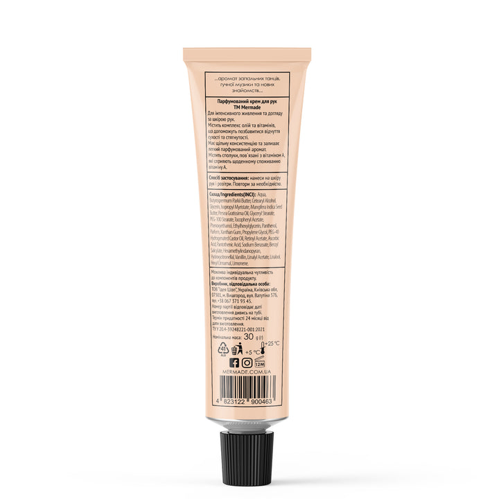 Парфумований крем для рук від MERMADE подарує чудовий, насичений і вже улюблений аромат, буде допомагати живити та доглядати за ніжною шкірою твоїх ручок. Комплекс олій, баттерів та вітамінів допоможе зберегти красу твоїх рук та захистити їх від впливу холоду та несприятливих факторів навколишнього середовища.