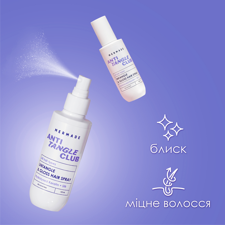 Спрей - кондиціонер для легкого розчісування MERMADE призначений для полегшення процесу розчісування волосся. Підходить для довгого та тонкого волосся, що схильне до заплутування або має схильність до утворення вузликів. Підходить для використання дітям від 6 років під наглядом дорослих.