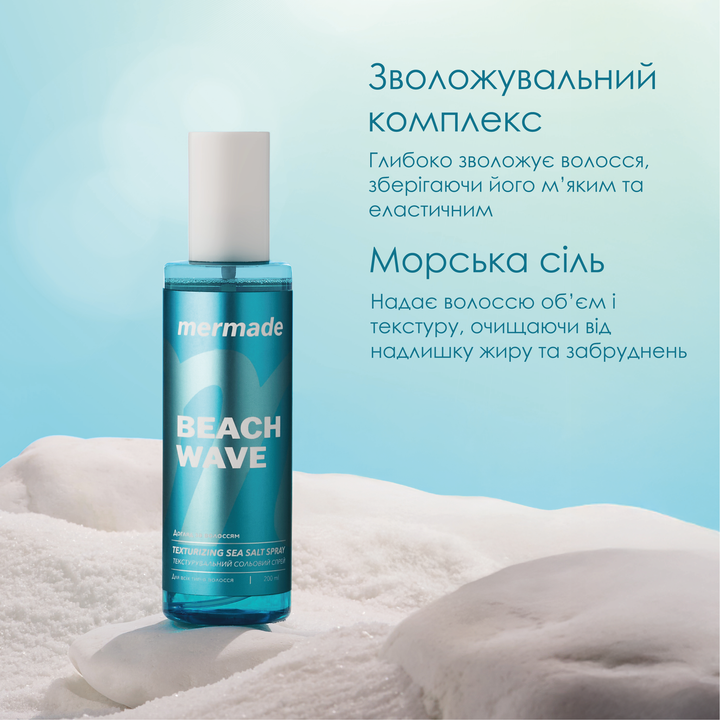Цей спрей — знахідка для тонкого або неслухняного волосся, якому бракує об’єму. Морська сіль створює природну текстуру та ефект «пляжних хвиль», а зволожуючий комплекс дбає про м’якість, блиск і захист від пересушування. Легка формула не обтяжує, не склеює та не робить волосся жорстким, як це буває з лаками чи мусами.
