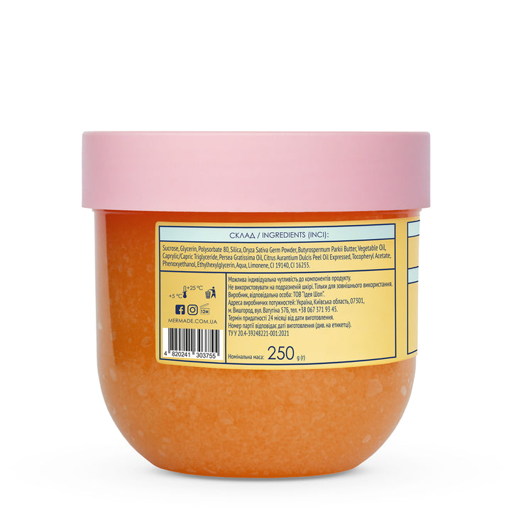 Коли день був довгим та насиченим, а настрій більше схожий на вичавлений апельсин — час поставити робочі будні на паузу! Виділи трішки часу на себе: забіжи до ванної і злегка проскрабуй шкіру цукровим скрабом для тіла MERMADE Citrus Party. Змий та відчуй свіжість та енергію!